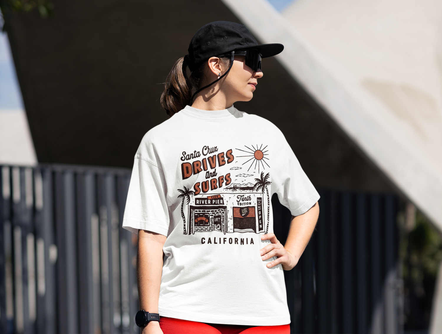 The “Santa Cruz – Drives & Surfs” tee mixes soft, breathable jersey with a retro pier-and-palms graphic laid-back coastal vibe you can throw on any morning. Style it boardwalk-casual: light-wash straight jeans or sand chinos, a canvas belt, white court sneakers or espadrilles, and a camp-collar shirt left open; cuff the sleeves once and add a pair of sunnies to finish. Handles real life and fun stuff alike coffee runs, classes, market strolls, day trips, coastal drives, beach bonfires, outdoor movies, and festival nights. True to size for a clean drape; size up for a relaxed, surfer fit. Pull on and cruise.