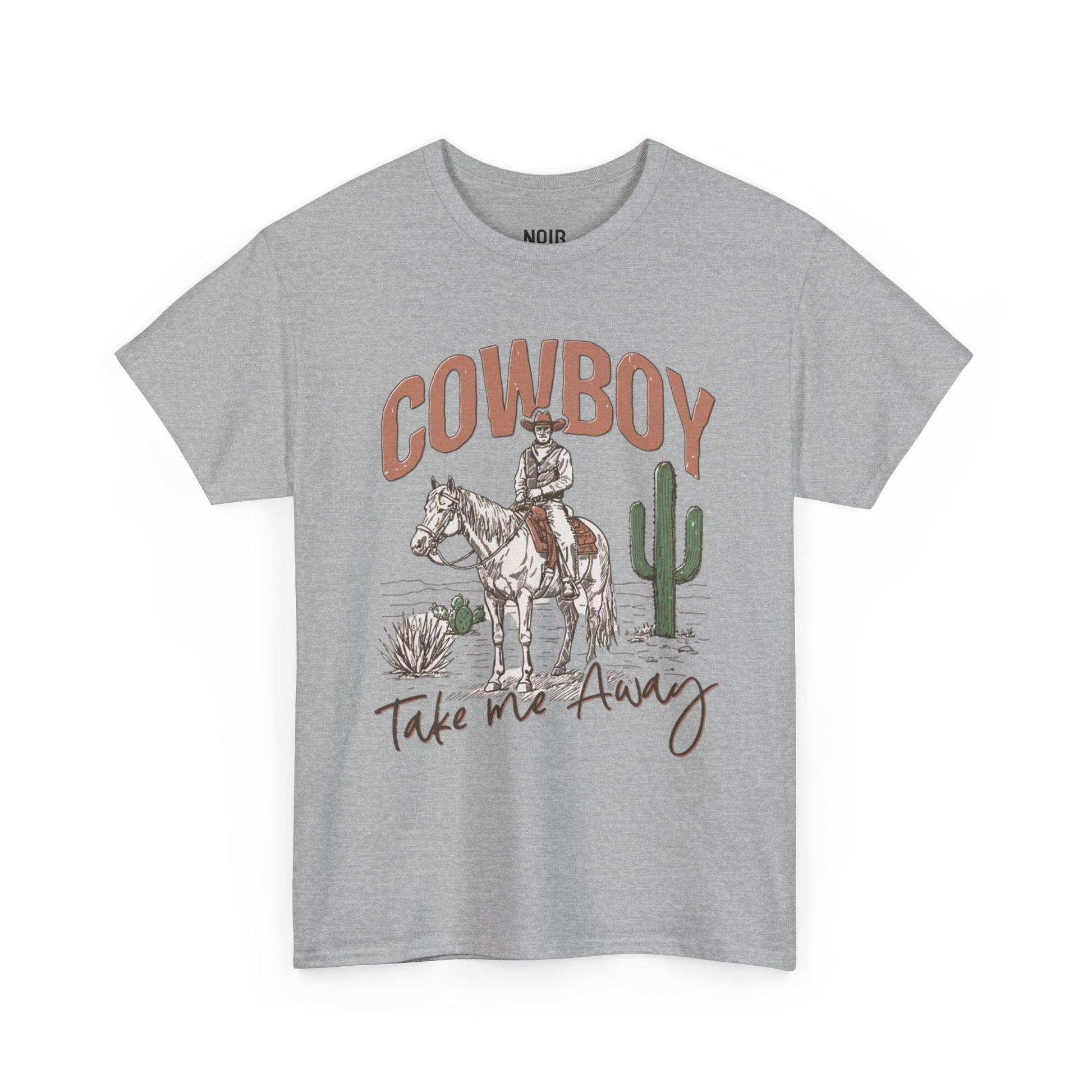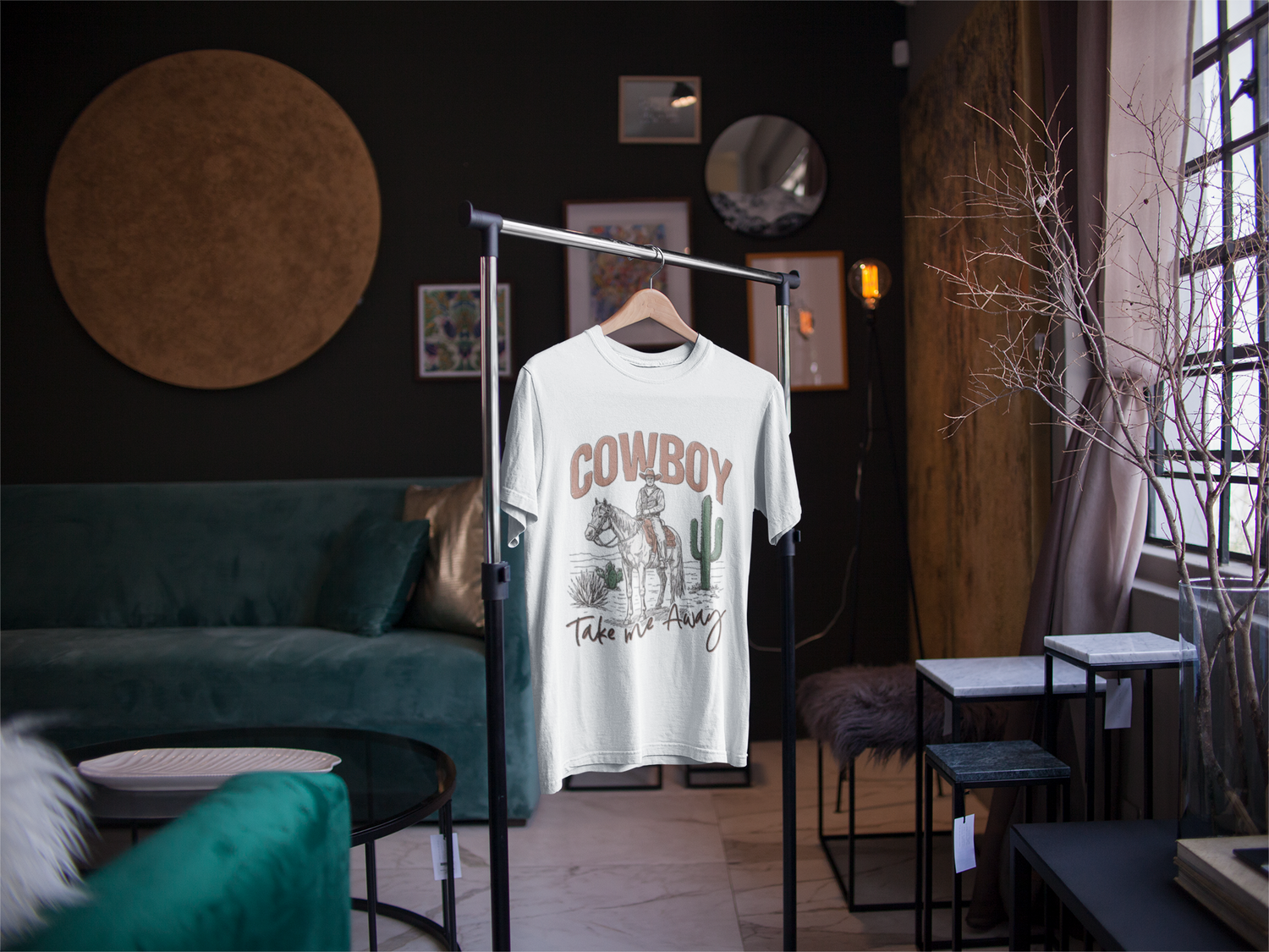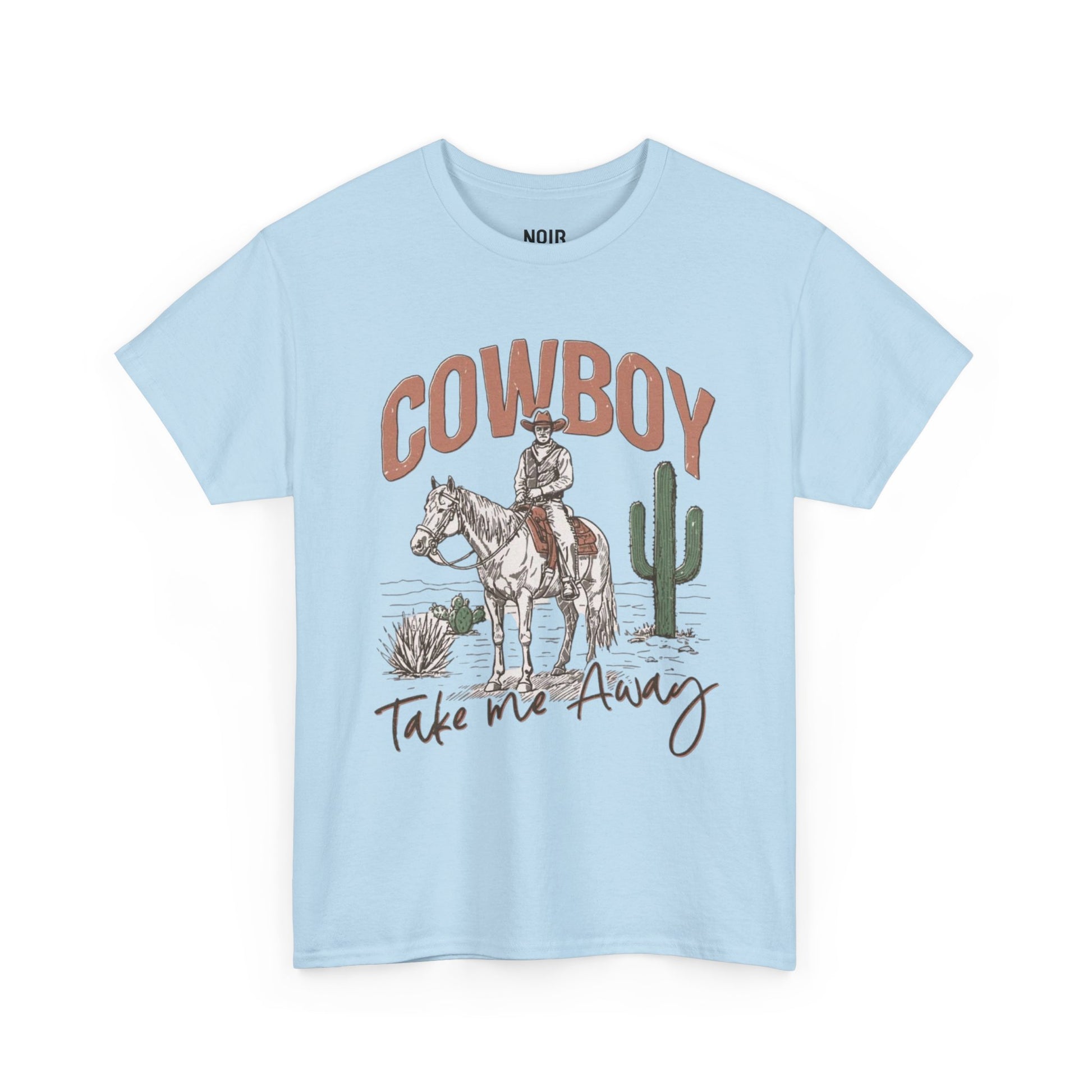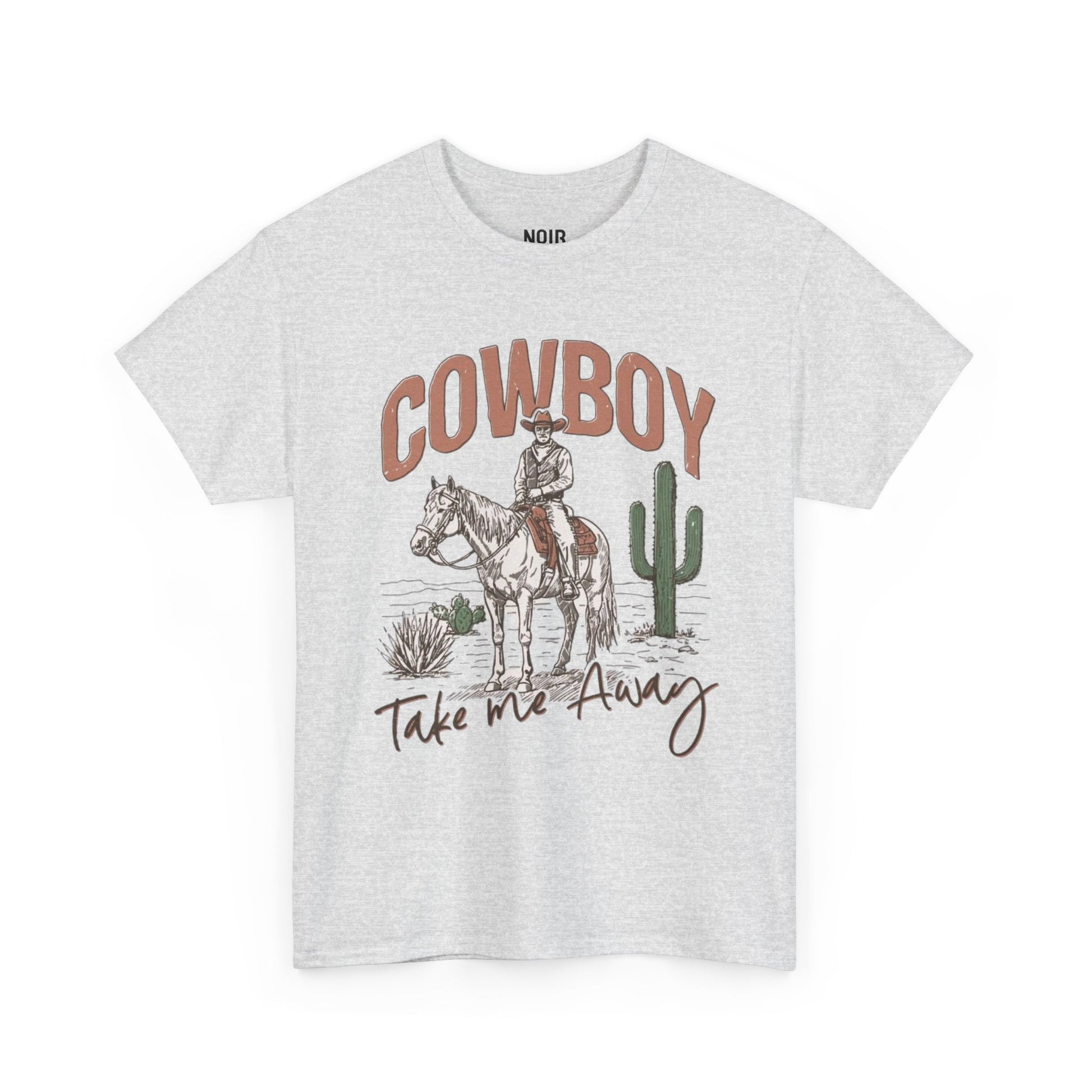 Soft, breathable jersey meets a hand-drawn desert scene cowboy, saguaro, and “Take me away” script for a laid-back tee with nostalgic charm. Style it the rodeo-romance way: high-waisted light-wash jeans or cutoffs, a tan leather belt, ankle boots or white court sneakers, and a cropped denim or fringe jacket; half-tuck the hem and roll the sleeves once to keep it sharp. Weekday-to-weekend ready coffee runs, classes, markets, concerts, road trips, and golden-hour photos. True to size for a clean drape; size up for an easy, festival vibe. Feel relaxed, look charming - every time.