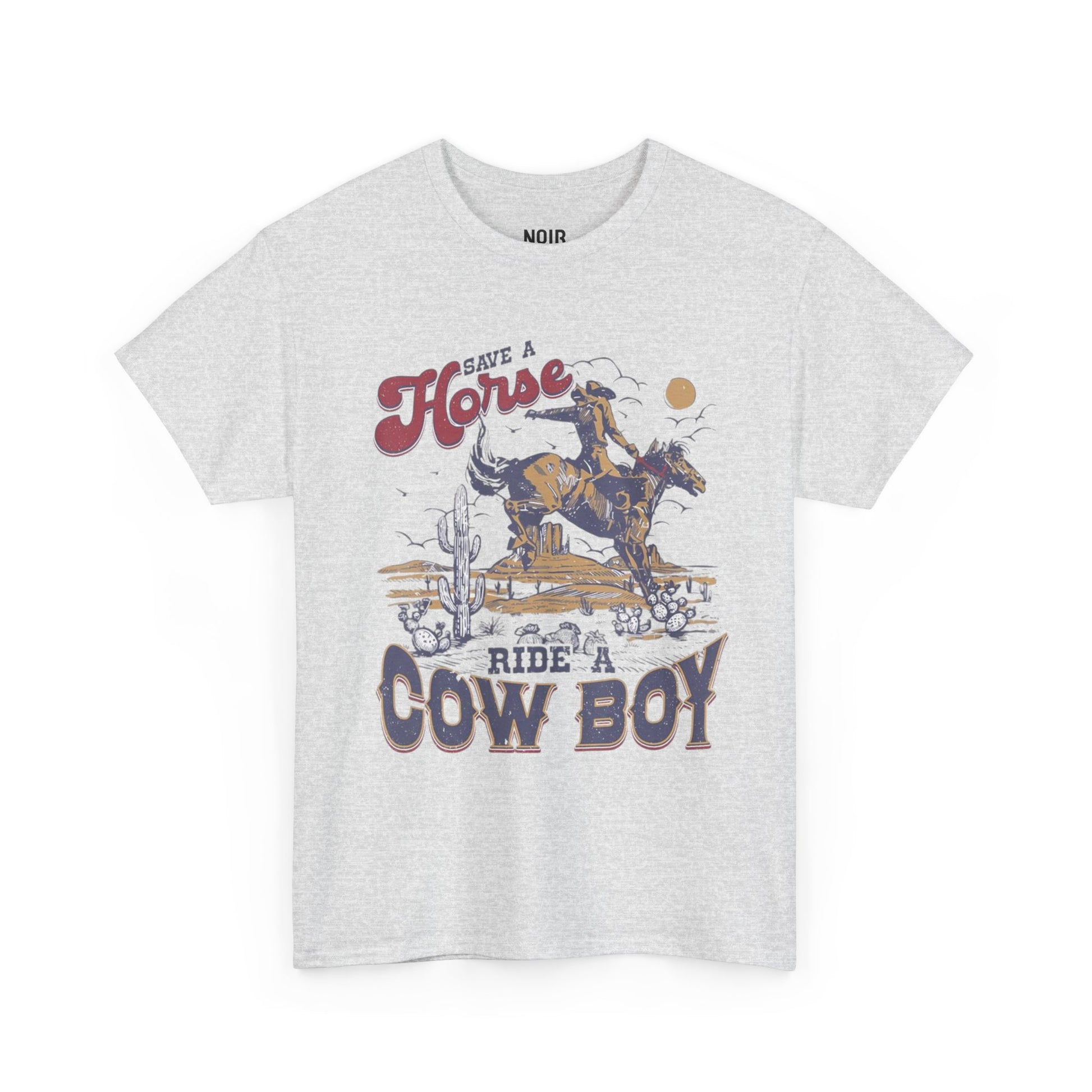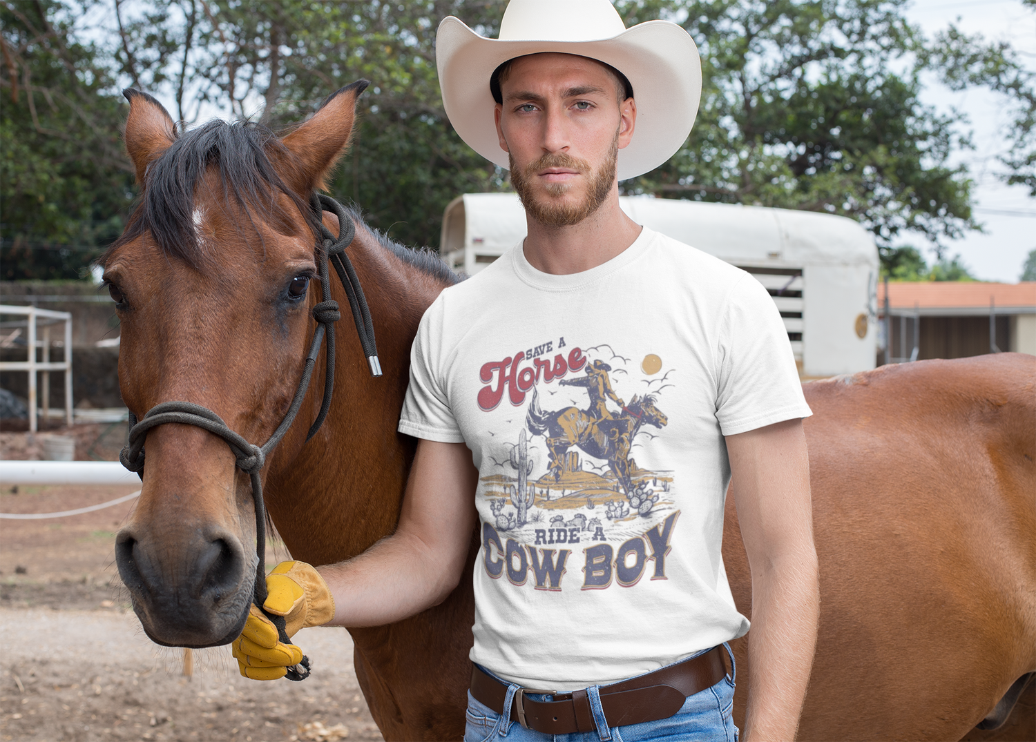 The “Save a Horse, Ride a Cowboy” tee mixes soft, breathable jersey with wink-and smile rodeo art - an instant conversation starter that wears easy from first coffee to last call. Cut in a relaxed regular fit that drapes cleanly and layers well under flannels or denim.