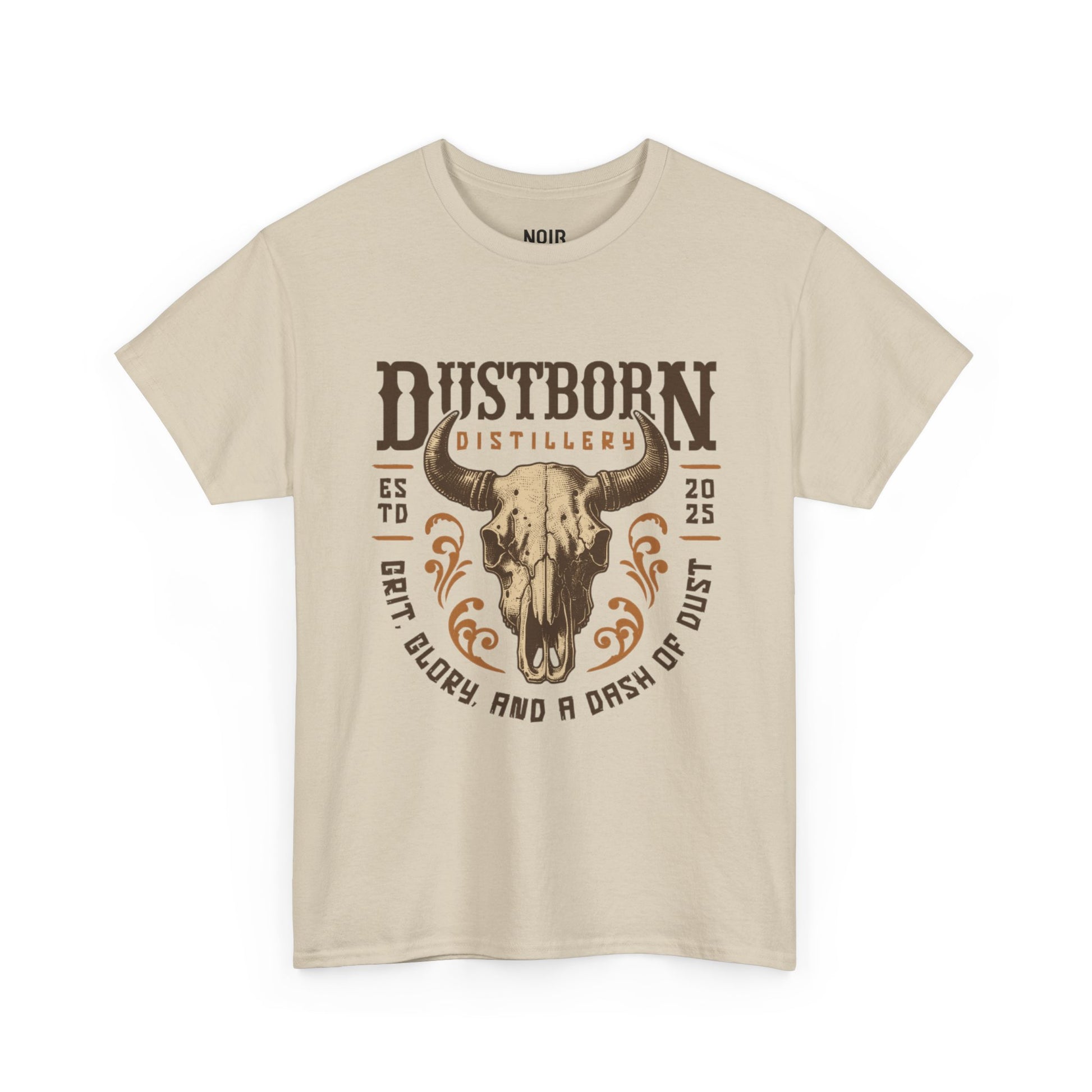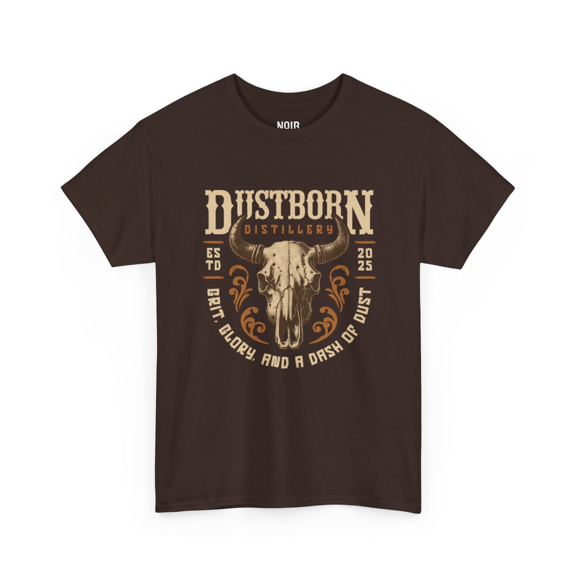 The Dustborn Distillery tee blends soft, breathable fabric with a vintage Western graphic, turning a dark-chocolate base and sand print into warm contrast that stands out. Wear it the roadhouse-casual way: raw blue denim, tan suede boots, and a light-wash trucker jacket—the earthy tones echo the print and the jacket sharpens the silhouette. Built for daily rotation—commutes, campus, coffee runs—and perfect for road trips, live gigs, weekend markets, casual Fridays, BBQs, and low-key nights out. Feel easy, look bold—every time.